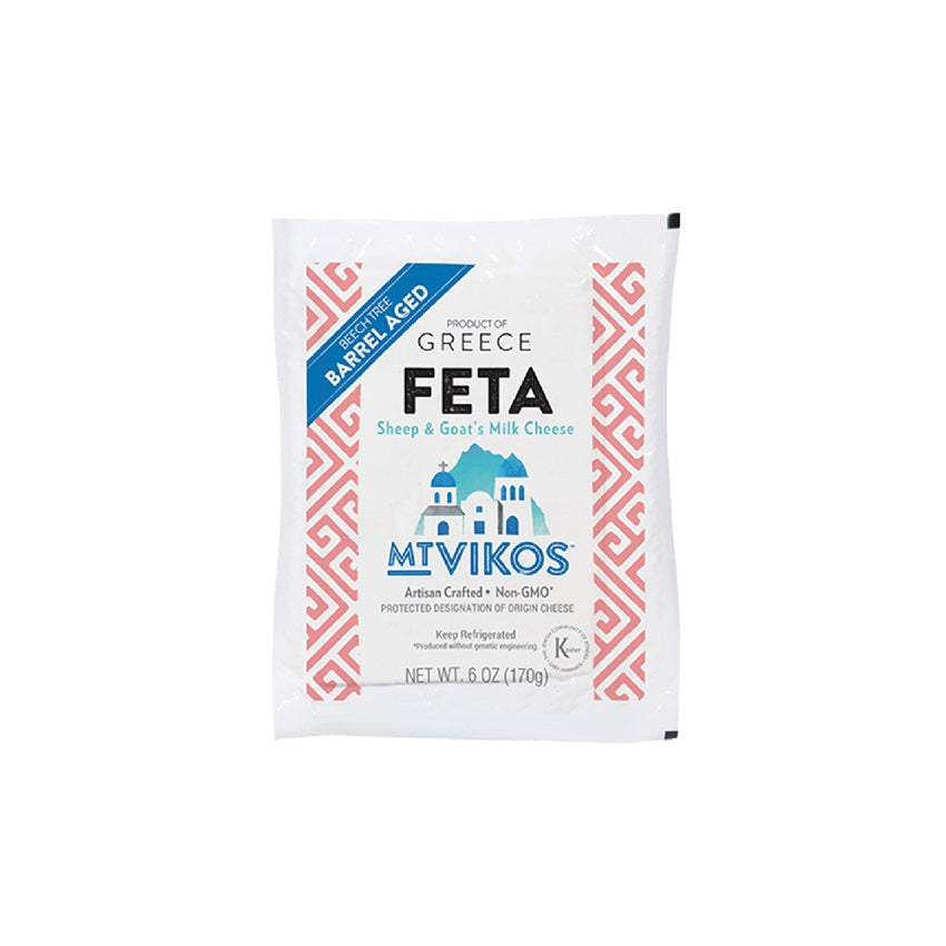 Production of Mt. Vikos Barrel Aged Feta takes place around Thessaly in Greece, a beautful region bordered on one side by the Aegean Sea, and on the other by the mountain range that includes Mt. Olympus. Milk for production comes from the goats and sheep that range freely on the slopes of Mt. Olympus, where they browse and have access to over two dozen grasses and wild herbs. Each morning, the milk is collected by a herders' cooperative and delivered to the Mt. Vikos creamery. Once made, the feta is dry salted, cut into large wedges and placed into 120lb. birch wood barrels. A brine solution is poured into the barrel to submerge the cheese, and the barrels are then cellared at 55°F with 85% humidity to mature for at least four months. The paste of Mt. Vikos Feta is bone-white in color and slightly "open,"' meaning that is has slits and holes. The texture is dense but crumbly, and yet the mouthfeel is rich and smooth. Flavors are pleasantly salty with clean, lactic, milky notes and a slight lemony tang.